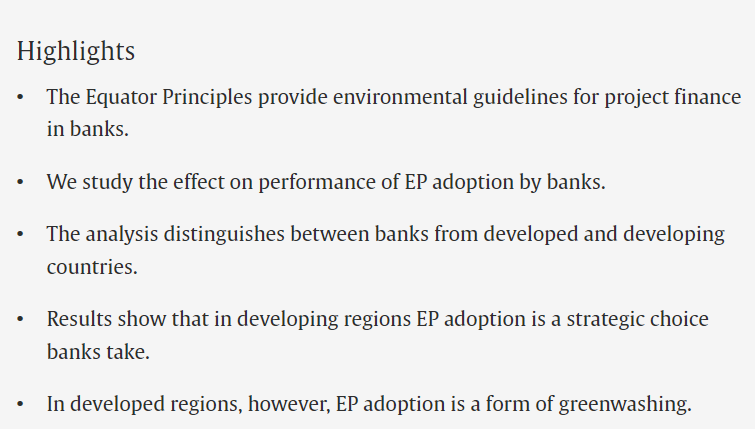 Many financial institutions have signed the principles. Virtually, soon enough, all projects would need to comply with these principles in order to find money for execution.