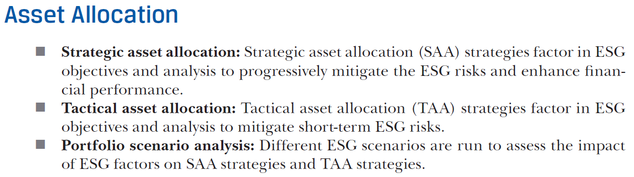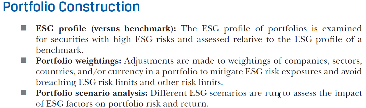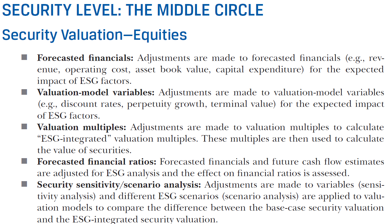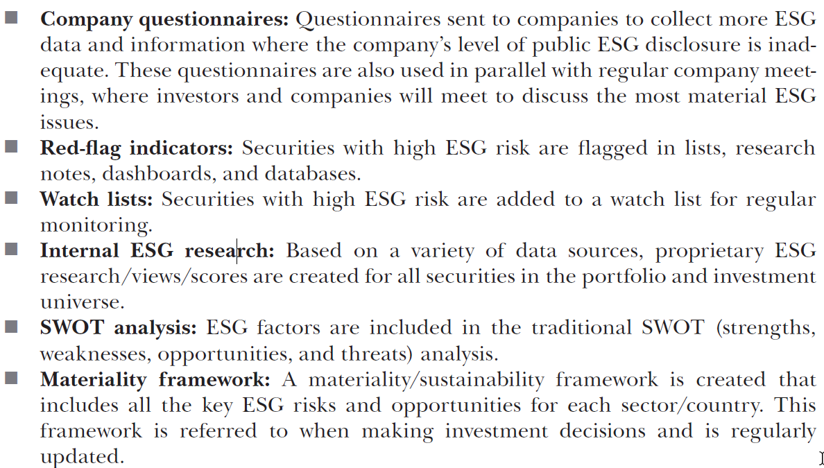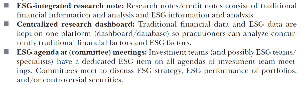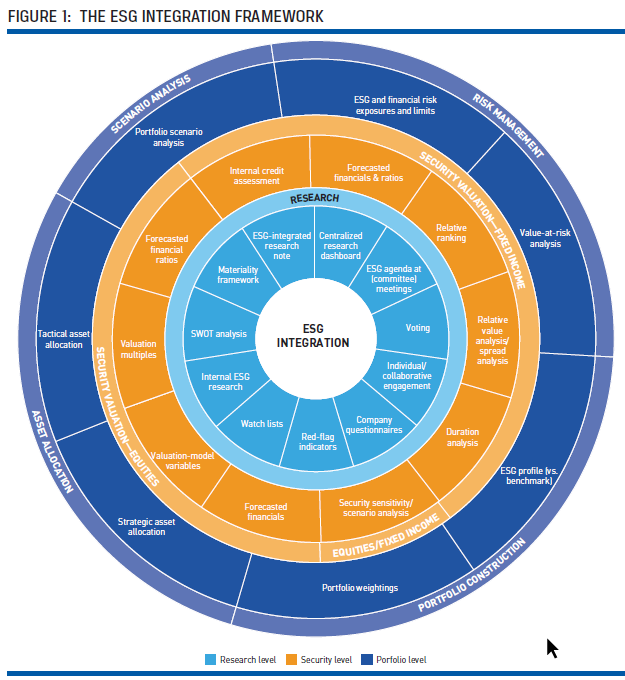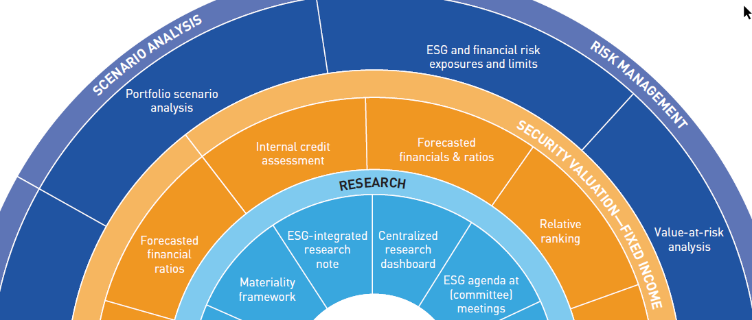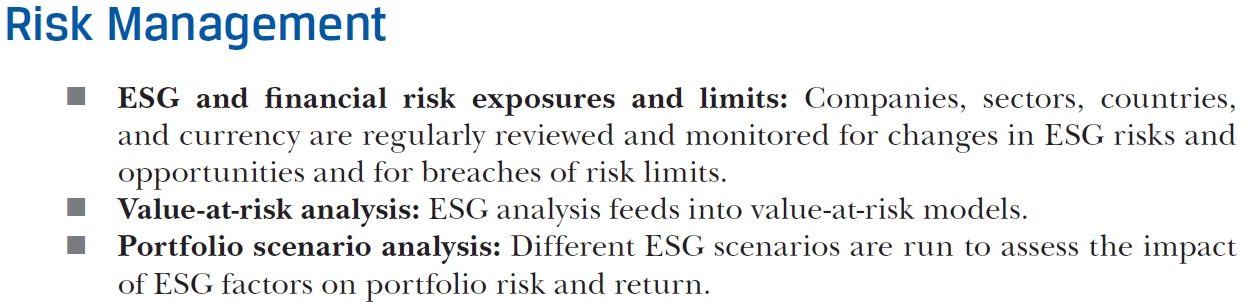 It includes the ESG information during the research phase, security valuation, or portfolio construction—or later, during monitoring and risk management.