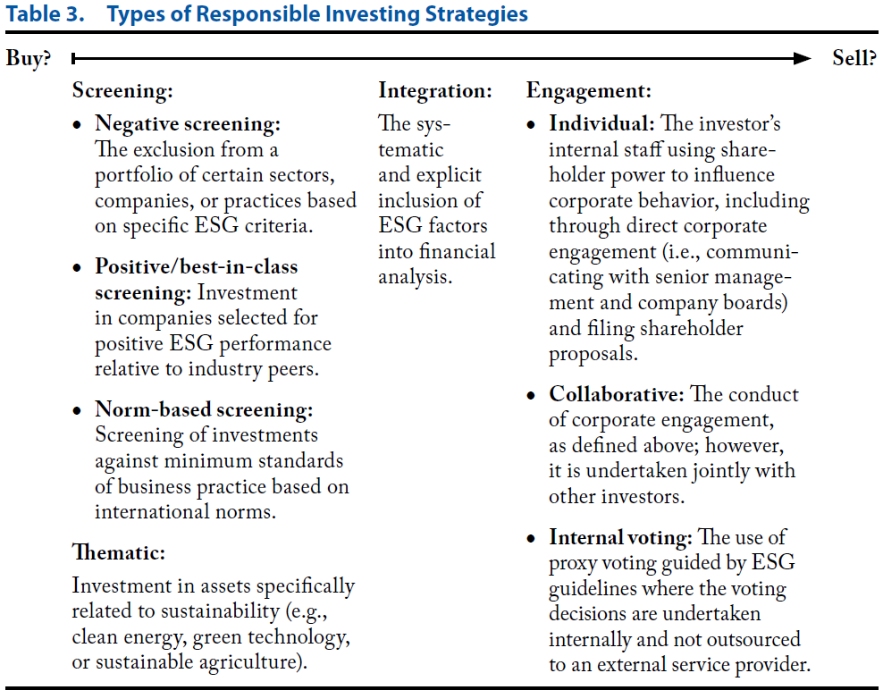 The third type of strategies consists of engagement with corporate management and occurs subsequent to making an investment.