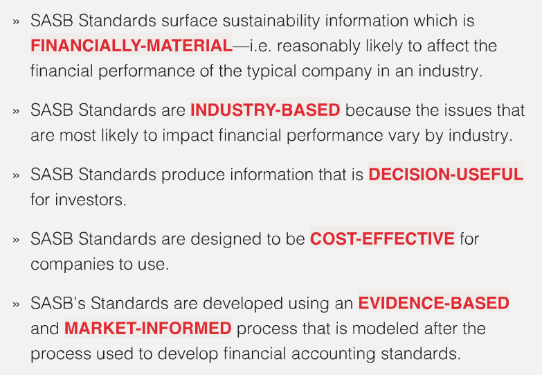 SASB Standards guide the disclosure of financially material sustainability information by companies to their investors.
