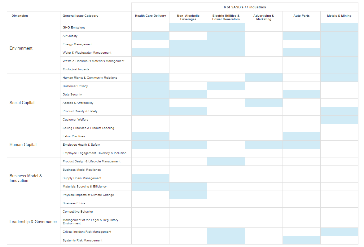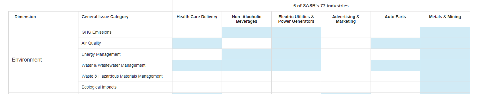 The next step is to create a matrix showing which issue is material to each industry.