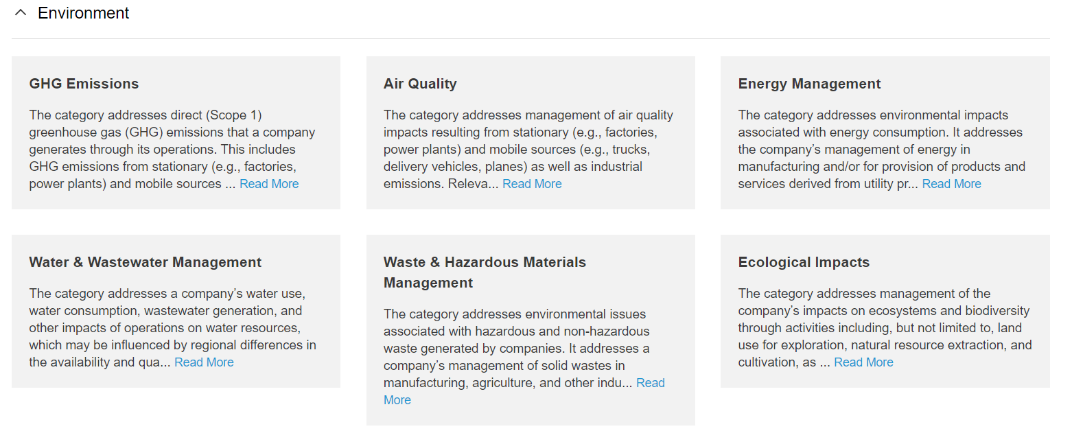Businesses can use the map to pinpoint, manage, and report on the disclosure topics most relevant to their industry, along with the associated accounting metrics.